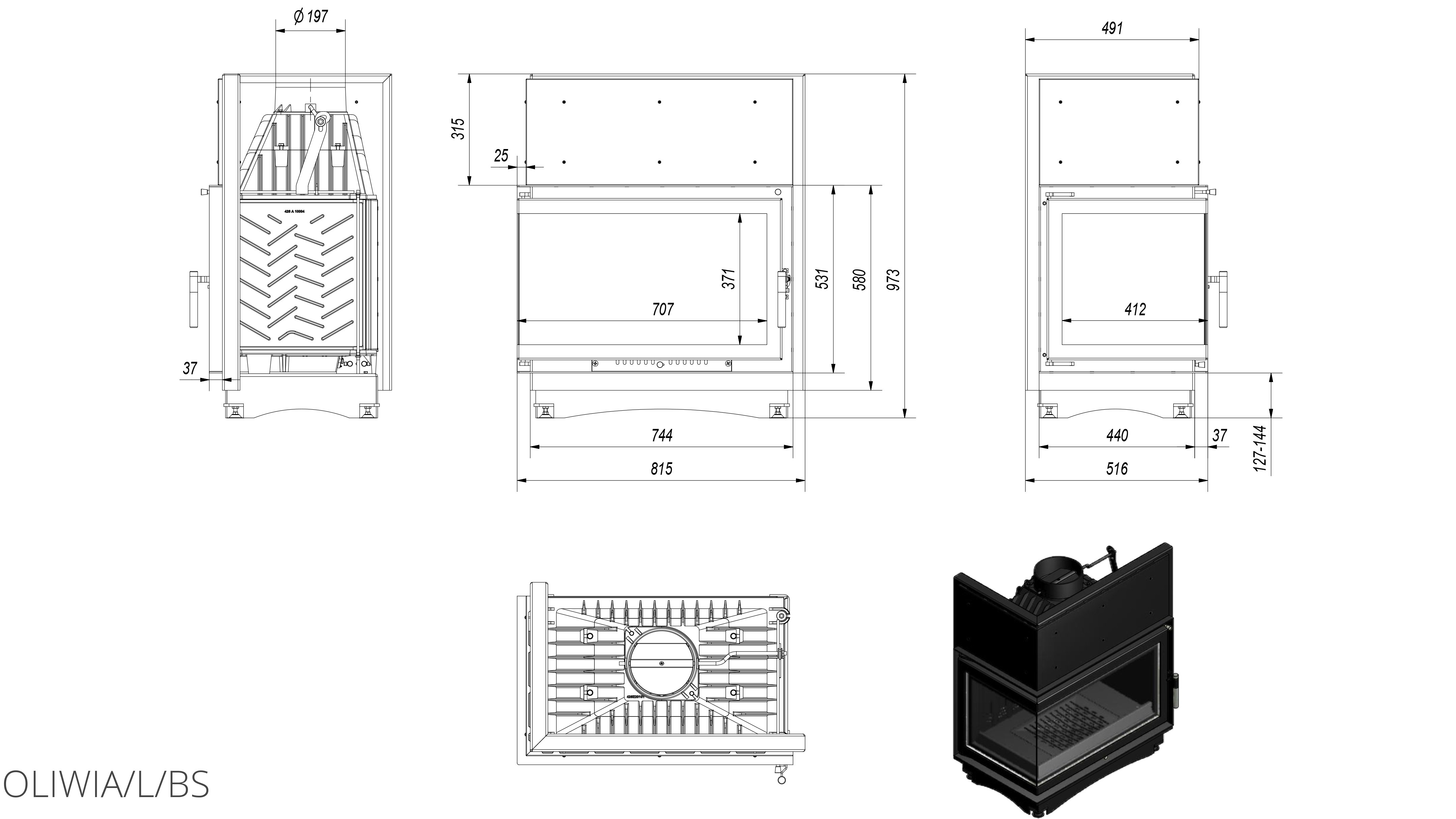 Каминная топка Kratki Oliwia/L/BS (Г-образное стекло слева) для угловых либо пристенных каминов. Особенно оригинально топка будет выглядеть в комплекте с угловыми каминами. Мощность прибора высокая, достигающая 18 кВт, что позволяет отапливать большие жилые пространства.