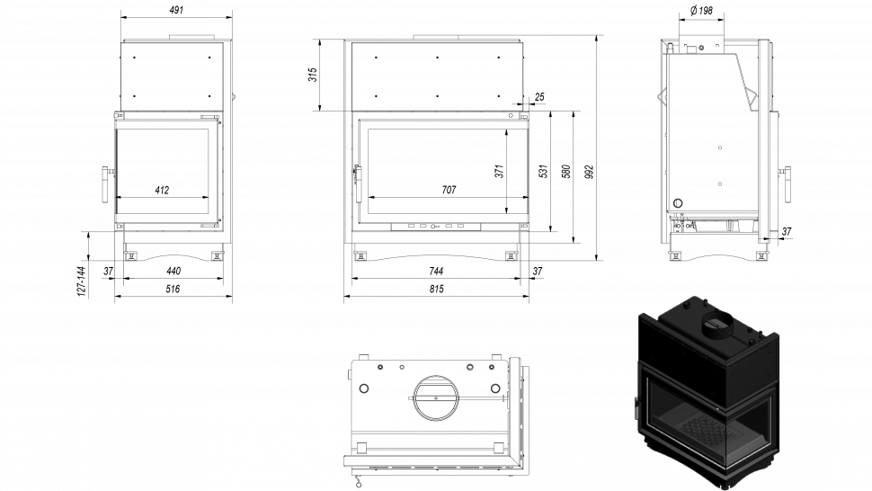 • Увеличена поверхность теплообмена благодаря встроенным водяным дефлекторам и высокому переходу камина в дымоход.