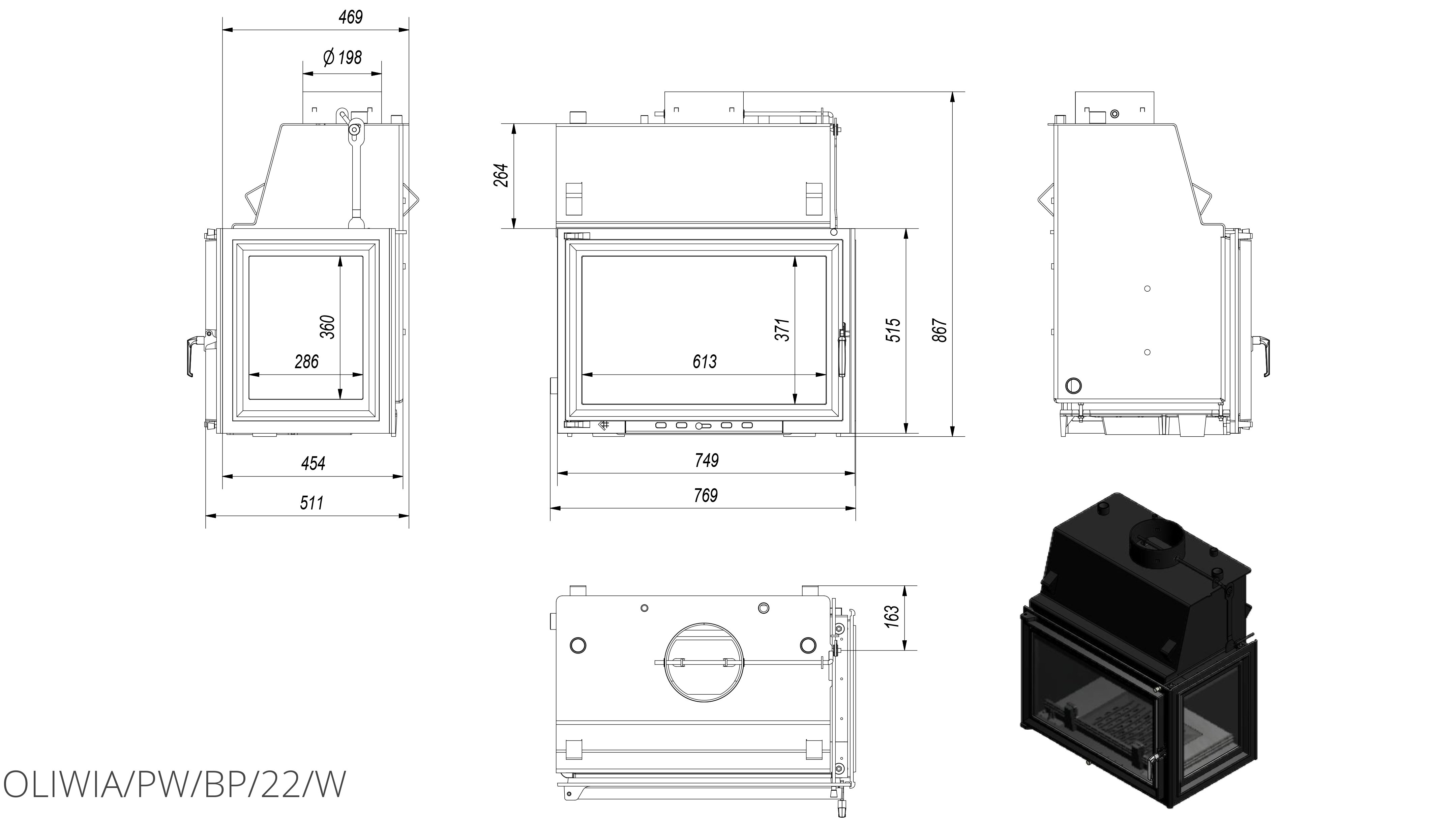 Каминная топка Kratki Oliwia/PW/BP/22/W