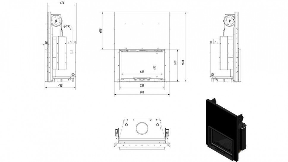 Каминная топка Kratki Wiktor/PW/12/W/G (гильотина) оснащена водяным контуром, что заметно расширяет возможности применения устройства, теперь отопление подается не только в комнату, где стоит очаг, но и в другие помещения, которые можно соединить в одну систему отопления. Агрегат отвечает все необходимым требованиям безопасности.