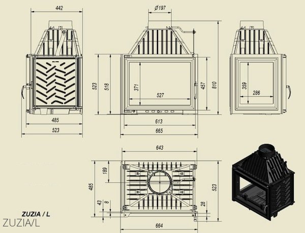 Чугунная каминная топка Kratki Zuzia/L (стекло слева) с дополнительным стеклом справа. Конструкция данной топки позволяет установить ее в углу помещения. Окно спереди и справа. Прямые стекла. Материал чугун. Достаточно высокий КПД. Оснащена зольником и подиумом для камина.