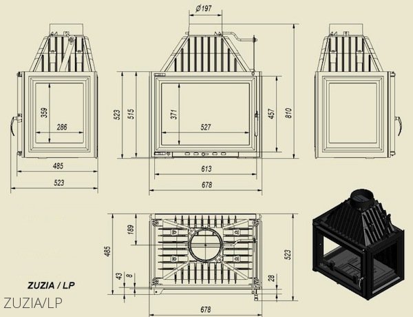 Zuzia/LP (стекло cлева справа) – популярная серия встраиваемых каминных топок польского производителя Kratki. Имеет не только стекло на передней панели, дополнительно у этой топки предусмотрены боковые стекла. Такое решение позволяет наблюдать за огнем с нескольких сторон, а жаропрочная керамика с системой очистки стекол надежно защищает помещения от искр.