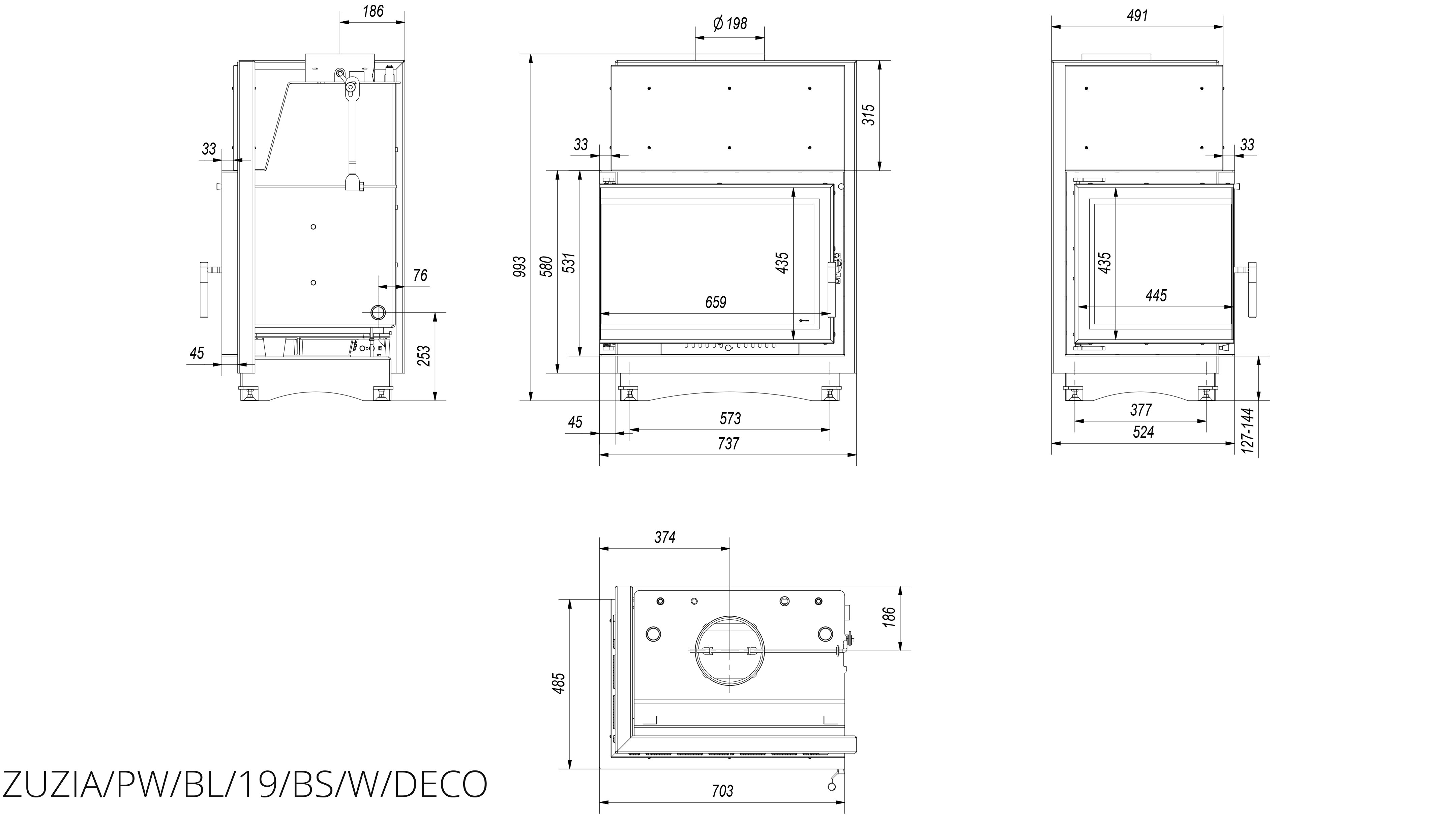 Каминная топка Kratki Zuzia/PW/BL/19/BS/W/Deco
