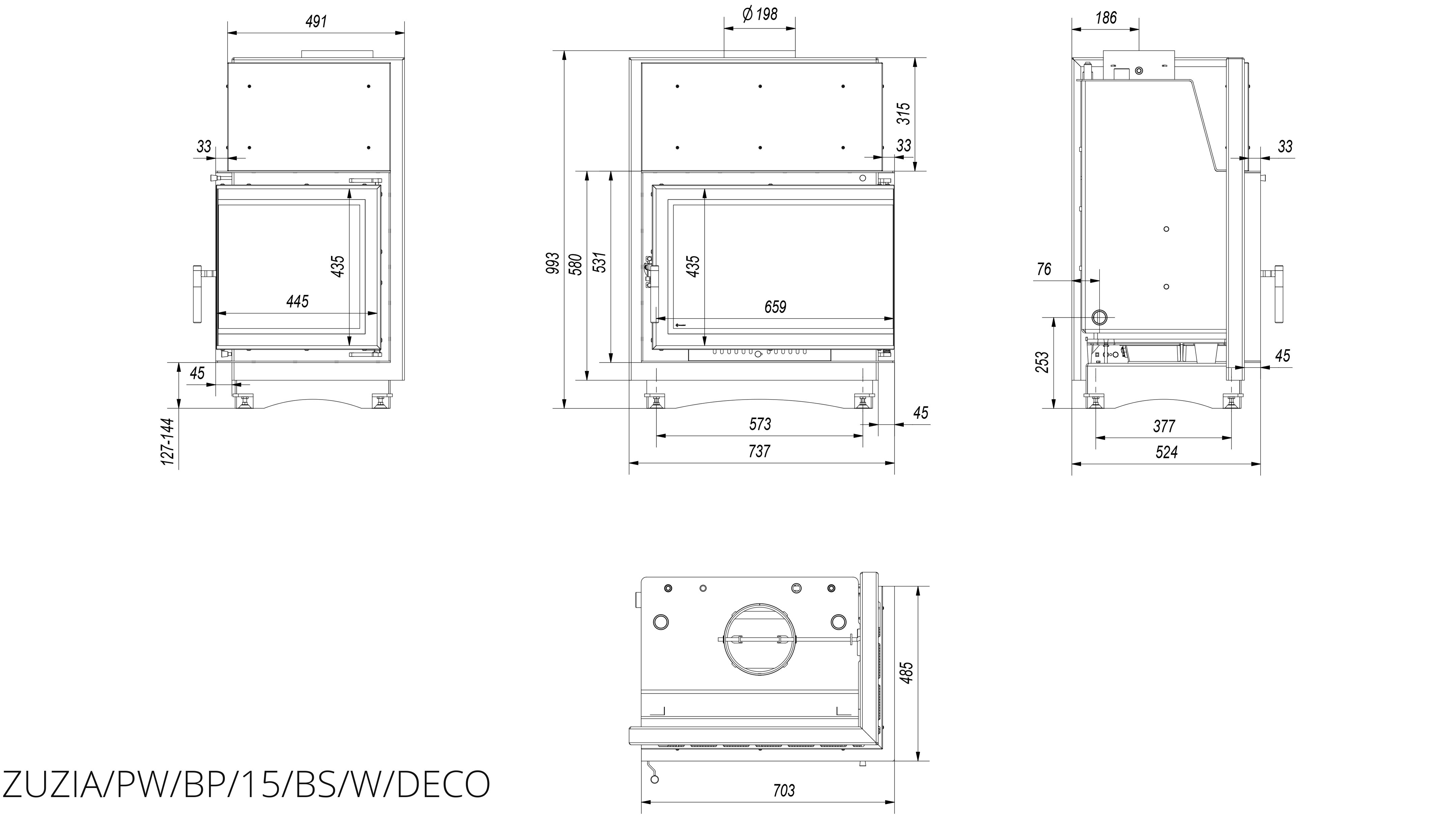 Каминная топка Kratki Zuzia/PW/BP/15/BS/W/Deco