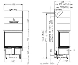 Все топки серии Plasma (Плазма) оборудованы системой приточной вентиляции позволяющей подводить воздух на горение с улицы или из соседних помещений. В конструкции топок предусмотрен специальный патрубок 100 диаметра, через который воздух из вне поступает в специальную камеру, откуда распределяется по воздушным каналам.