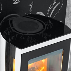 Камин Contura 35L выпускается в двух вариантах облицовки: глянцевая белая или матовая черная окрашенная сталь. Можно выбрать между цельностеклянной и чугунной дверцей топки.