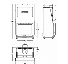 Корпус каминной топки выполнен из жаропрочной стали, колосники и патрубки из чугуна.