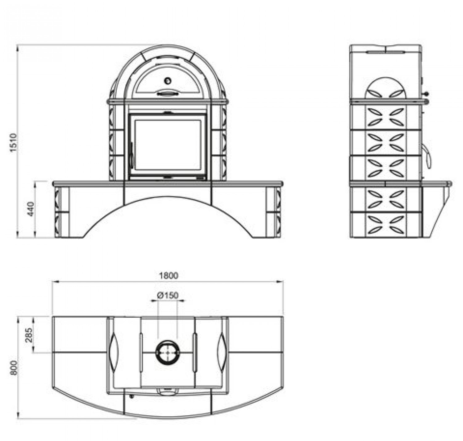 В качестве топлива рекомендованы сухие дрова. Топочная камера закрытого типа, с плоским прямоугольным окном из стеклокерамического огнестойкого материала. Облицовка печи выполнена из майолики ручной формовки, а притопочная зона – из керамики в тон основному цветовому решению внешней облицовки. С помощью Falo 1C можно не только обогреть дом, но и приготовить обед, так как каминный комплект предполагает большую выдвижную духовку. Конструкторы печи позаботились также о вместительной дровнице в цокольной части модели.