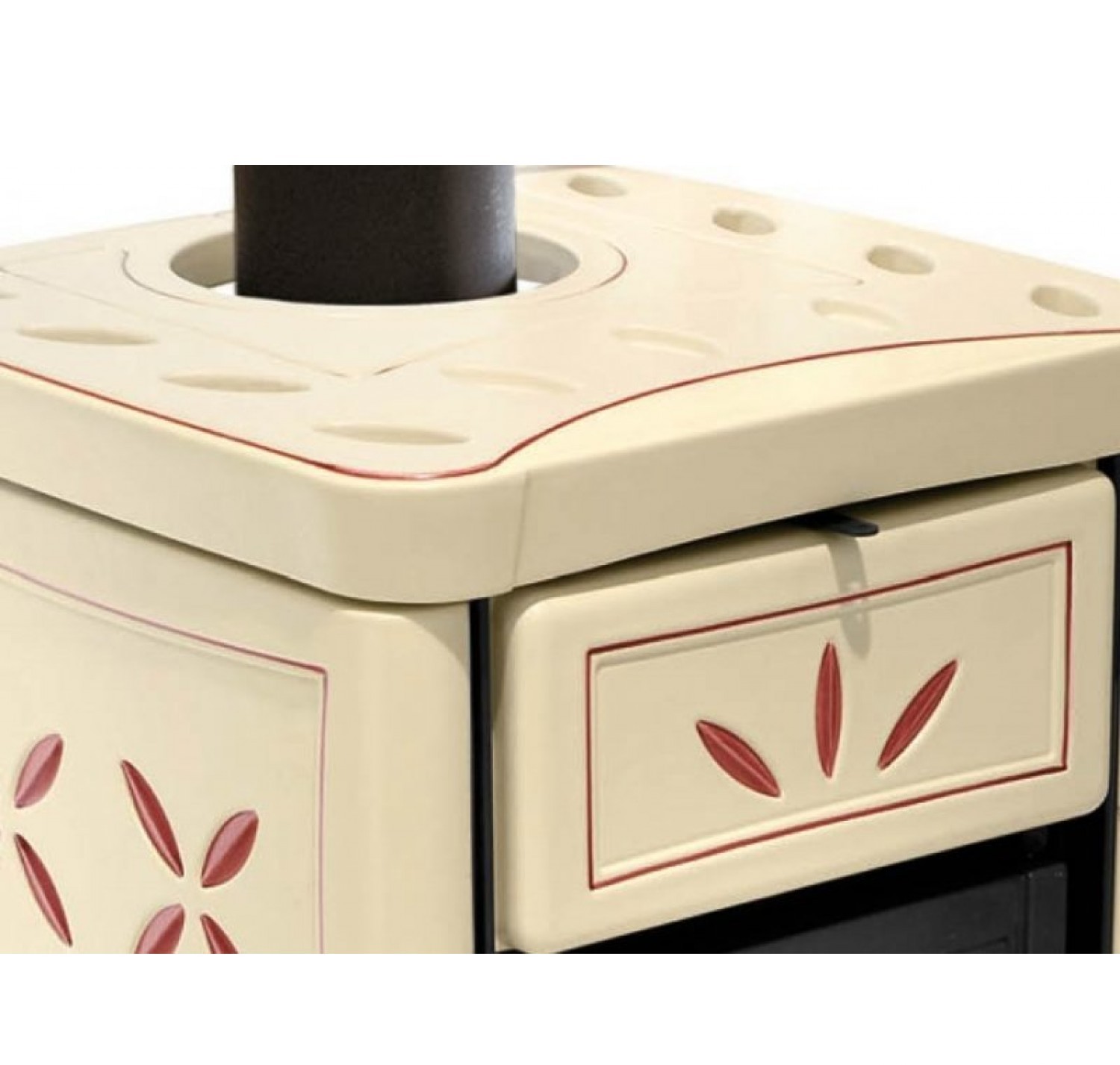Такой эффект достигается при помощи изысканной облицовки керамической плиткой – майоликой. Печь-камин La Nordica Lucy выполнена из прочного и устойчивого к действию температуры чугуна. Топка закрытого типа. Тепло распространяется в нескольких направлениях. Практичная дверца оснащена стеклокерамикой, со способностью противодействия жару, не превышающего температуры в 750 градусов. Автоматическая подача воздуха удаляет наименьшие следы копоти, и сажи с поверхности стекла.