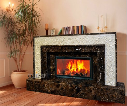 Камин может быть изготавлен из любого мрамора и под любую модель каминной топки.