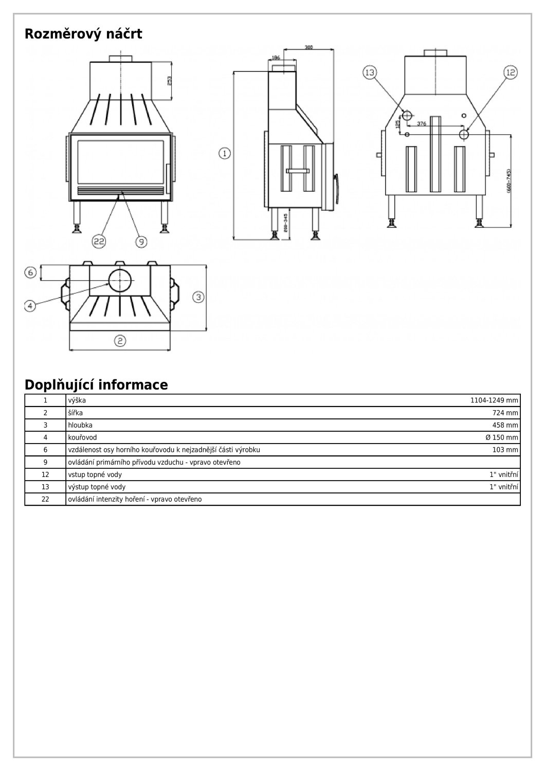 - Ширина видимой части топки (мм) 1249