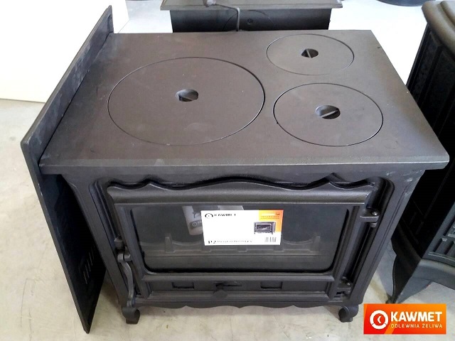Печь-камин Kaw-Met P2 отопительная - используется для отопления помещений и приготовления или разогрева еды, а также как предмет интерьера, выполненная из чугуна класса EN-GJL- 200. Представляет собой качественный дизайнерский отопительный прибор. На верхней части топки возможен разогрев и готовка пищи.