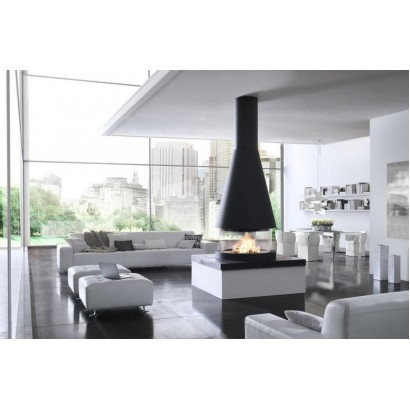 Основание сделано из панелей толстой майолики и окрашенной стали. Майолика ручной отделки, может быть заказана в вашем любимом цвете, выбранным из палитры Piazzetta. Очаг камина сделан из жаропрочного материала, кожух и основание из окрашенной стали. Камин оснащен эксклюзивным электронным механизмом подъема/спуска переднего круглого стекла. Камин совместим с топками M360 T (цилиндрический или конический кожух).