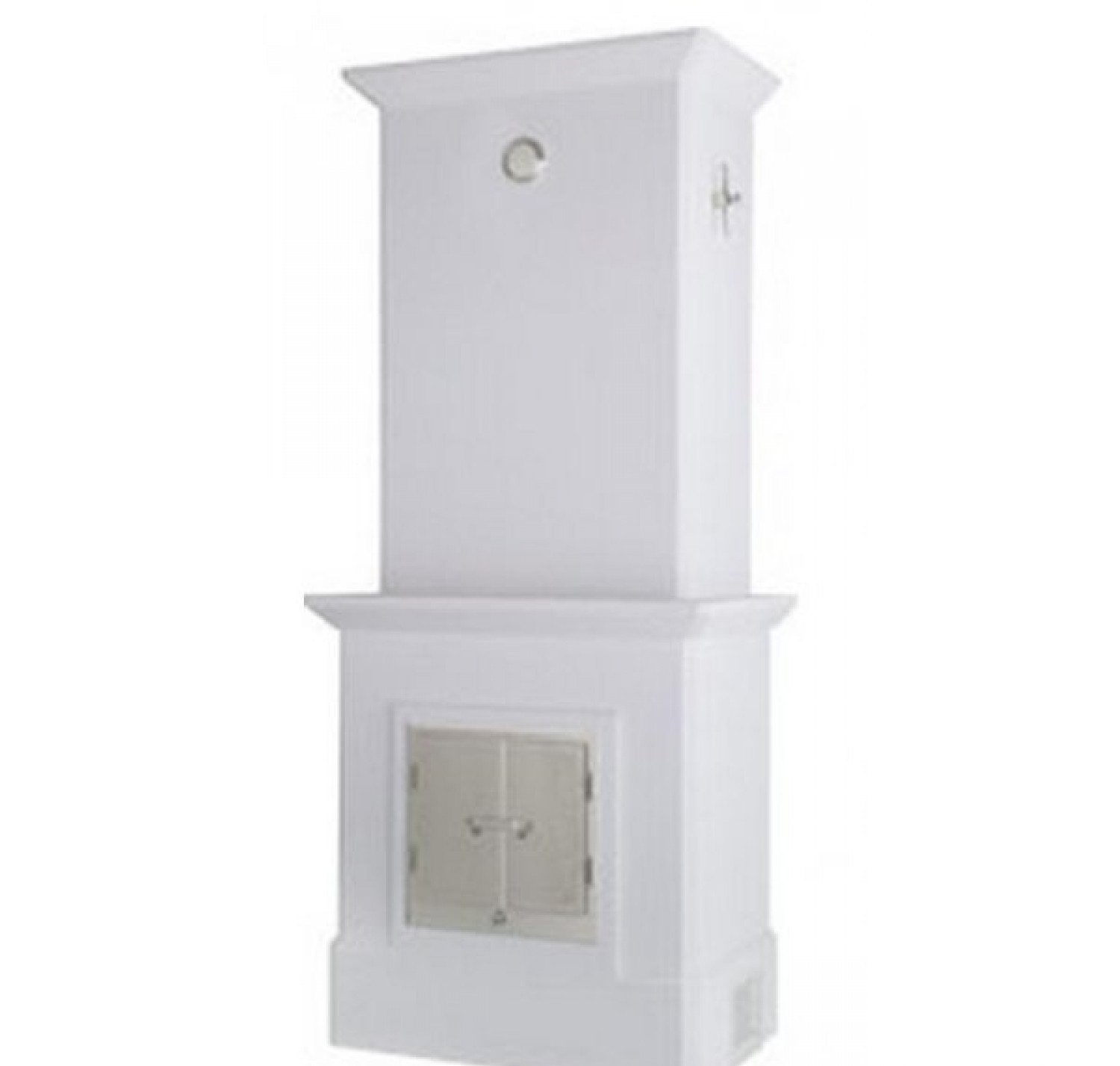 Топочная камера оснащена чугунной решеткой и дверцей, вынимающимся зольником и внутренней облицовкой из вермикулита. Теплонакопительная сердцевина печи состоит из оливина, люк - латунь. Отделка - бетон под покраску или штукатурку.