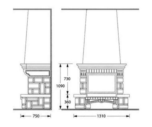 Цена указана за камин в стандартном исполнении (см. чертеж) из указанных материалов без топки.