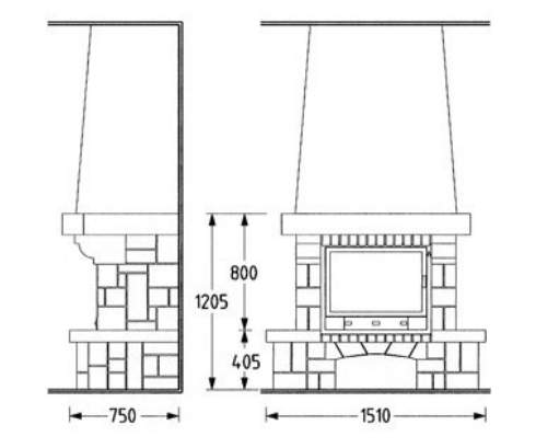 Цена указана за камин в стандартном исполнении (см. чертеж) из указанных материалов без топки.