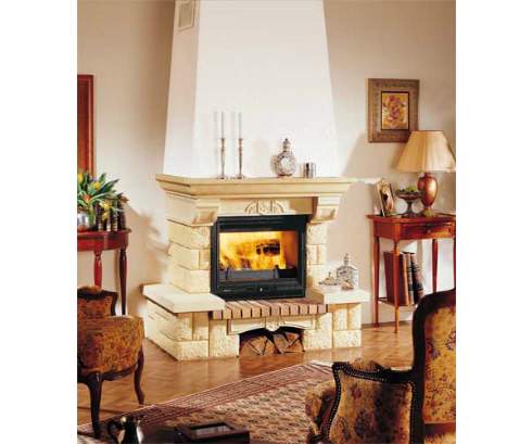 Пристенный фронтальный камин в стиле кантри с элементами декора в классическом стиле. Оригинальное смешение стилей и нейтральная цветовая гамма делают эту модель эффектной деталью интерьера Вашего дома. Камин Sardane 2 изготовлен из камня Эдельрок золотисто-песочного цвета.