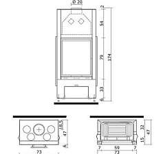Система «чистое стекло» - технология, которая позволяет стеклу камина долгое время оставаться чистым и не коптиться. Также топка оснащена регулировкой подачи воздуха на горение и шиберной заслонкой с автоматическим открыванием(при открывании дверцы, шиберная заслонка открывается автоматически, данное преимущество позволяет максимально ограничить проникновение дымовых газов в комнату).