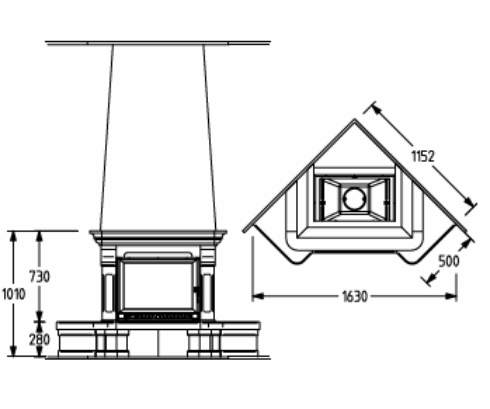 Цена указана за камин в стандартном исполнении (см. чертеж) из указанных материалов без топки.