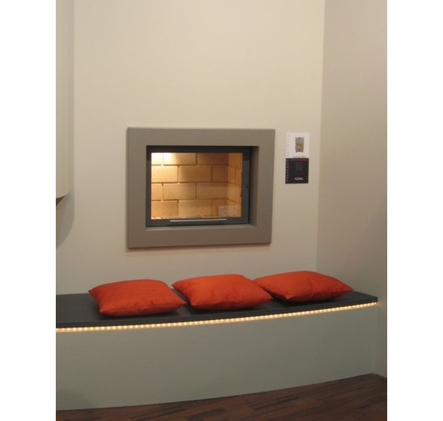 Топка оснащена системой очистки стекла, встроенным шибером и системой подводки внешнего воздуха в камеру сгорания, а также оборудована цепным механизмом подъема двери, съемной колосниковой решеткой и ножками, которые дадут возможность установить топку на неровной поверхности.