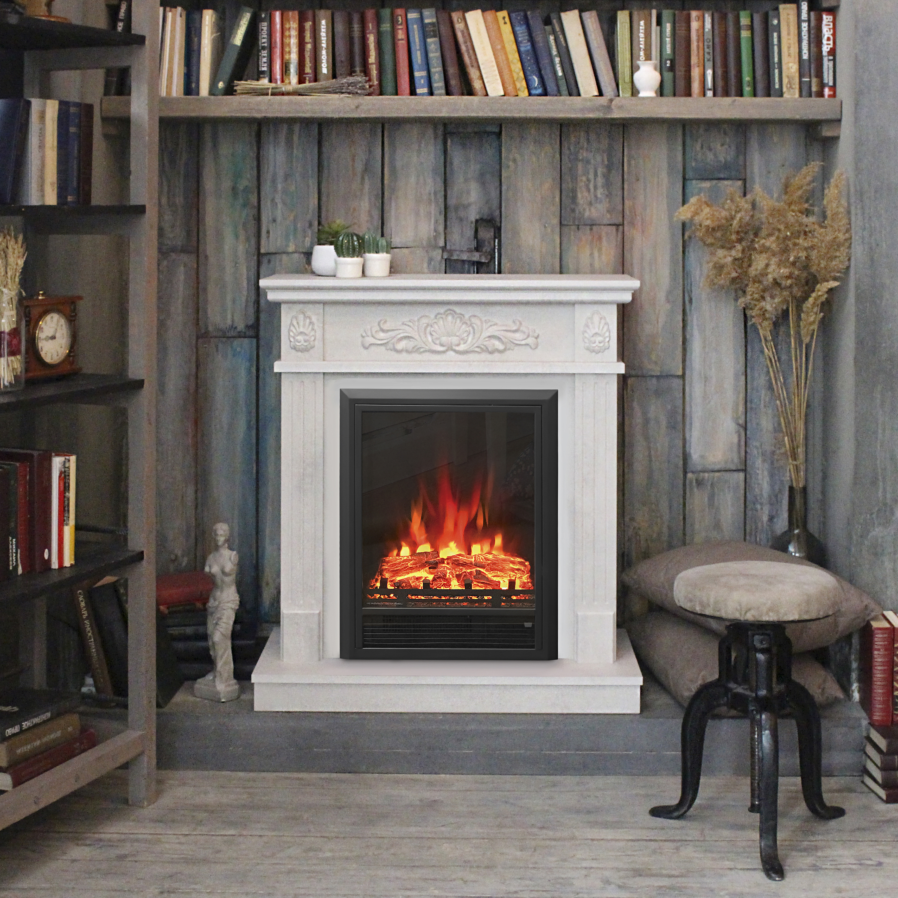 • Габариты рассчитаны на то, чтобы использоваться и в комнате средних размеров, и в достаточно небольшом помещении. Компактность и строгое соответствие классическому стилю — залог того, что такой камин отличным образом впишется в современный интерьер. Однако и при использовании его в винтажной обстановке не будет дисгармонии.