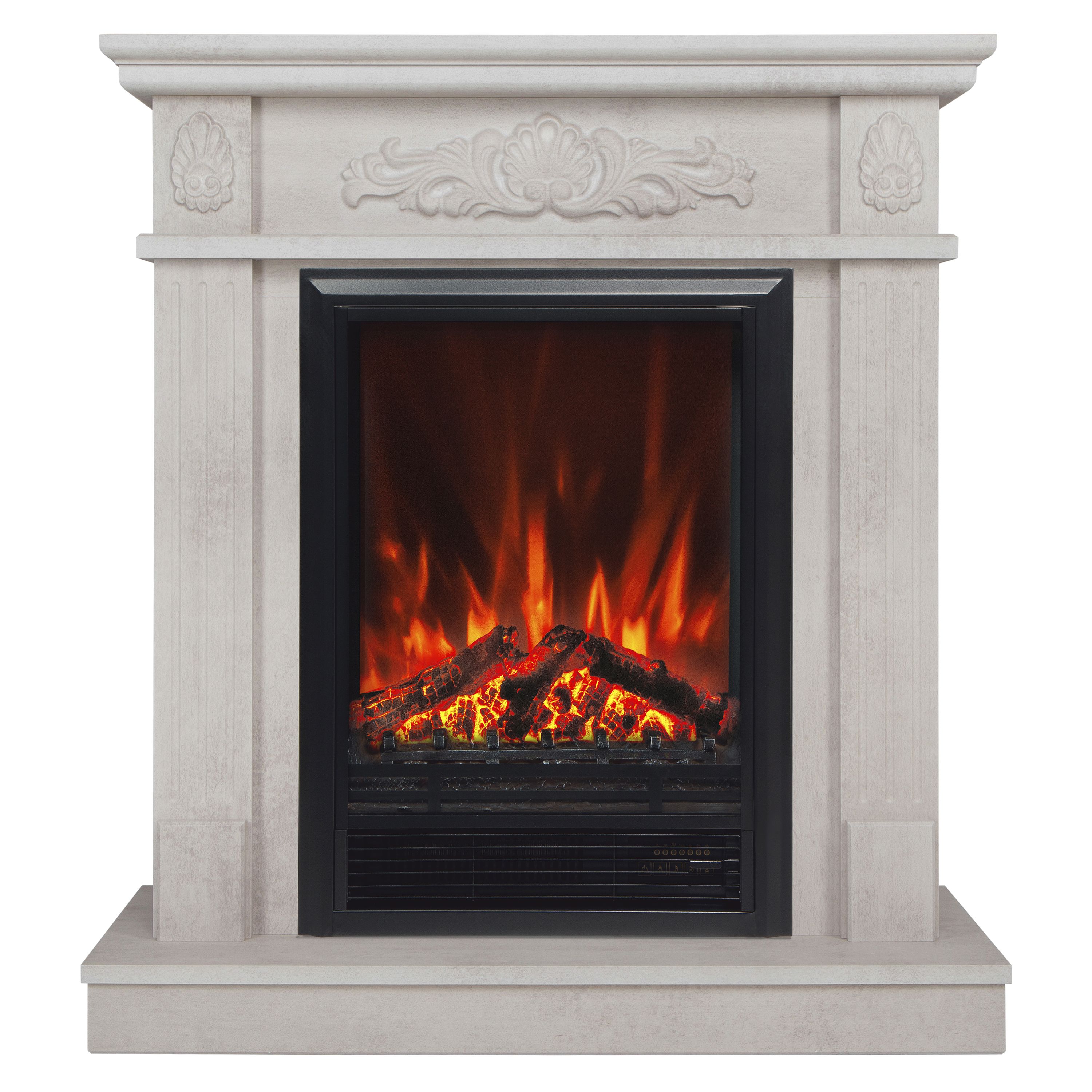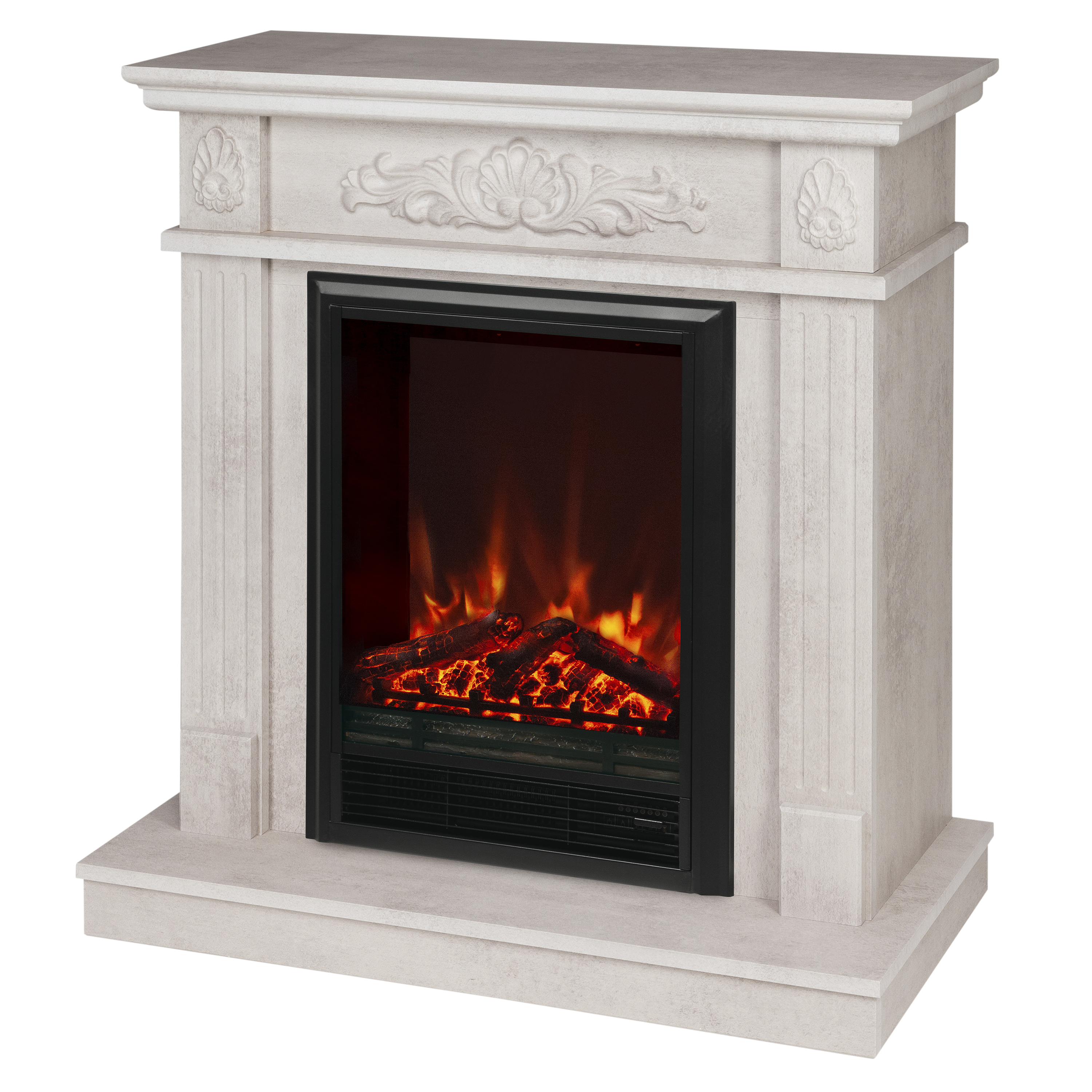 • Комплектуется многофункциональным очагом. Зеркальная стенка за муляжом дров визуально увеличивает глубину и создает впечатление трехмерности пламени. Звук потрескивания поленьев усиливает реалистичность восприятия. Выдув горячего воздуха в режиме обогрева осуществляется из нижней части очага. Режим автоматического затухания и разгорания дров (диммер).