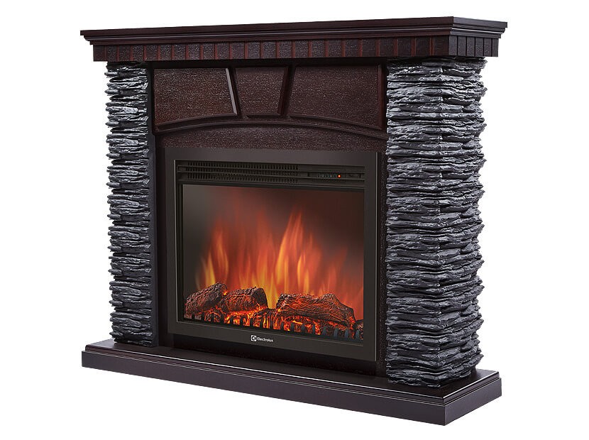 В серии порталов Porto 25 (камень сланец черный, шпон темный дуб) дизайнеры воплотили дух и очарование тихих городков с побережья Атлантического океана. По краям портал обрамлен массивными пилястрами, чья каменная структура из сланца пенится и вскипает в рельефном рисунке, создавая ощущение океанского прибоя. Над очагом Electrolux EFP/P-2520LS размещен молдинг с объемными элементами. Для гармонии именно с Вашим интерьером, камин в сборе Electrolux Porto 25 может быть исполнен в следующих цветовых решениях: