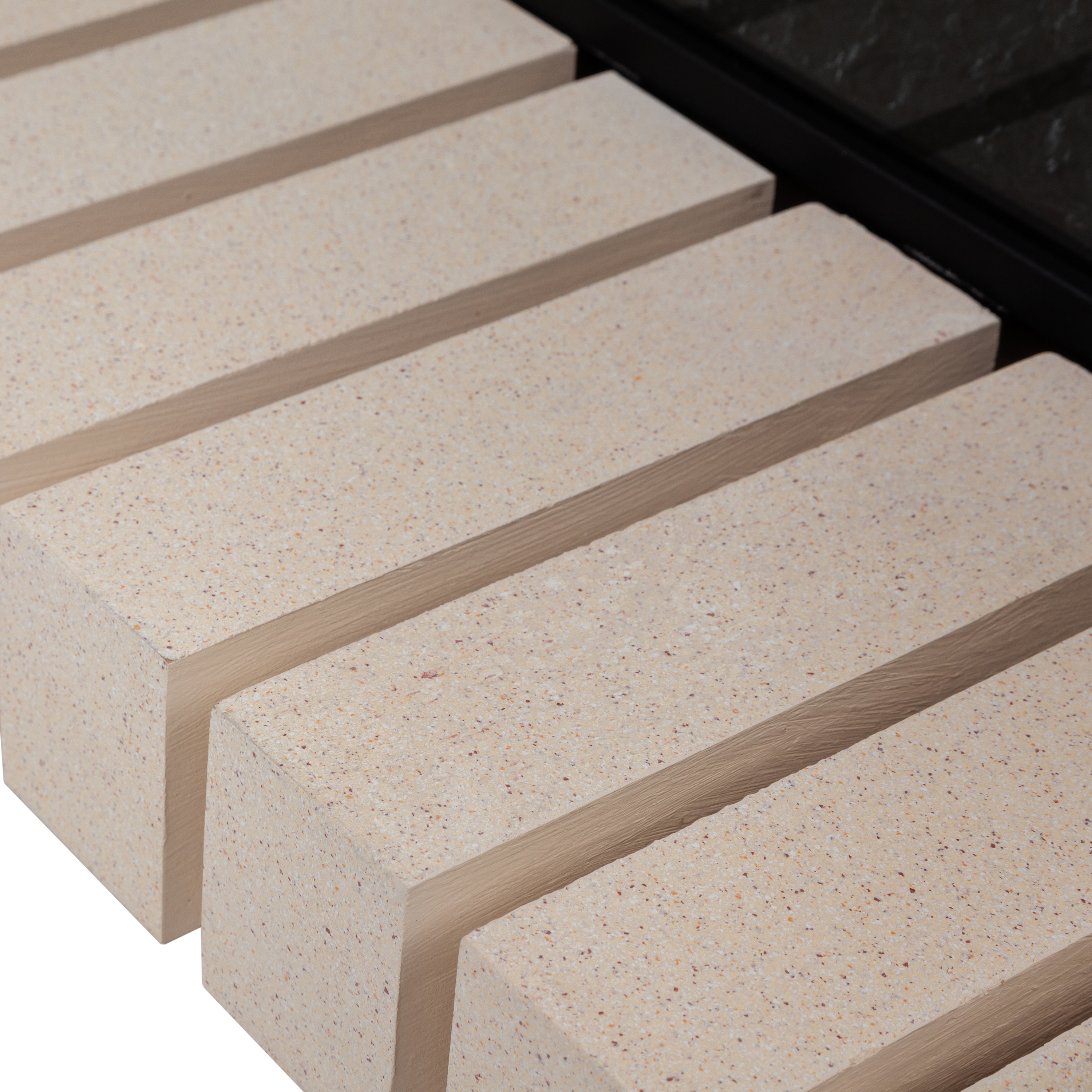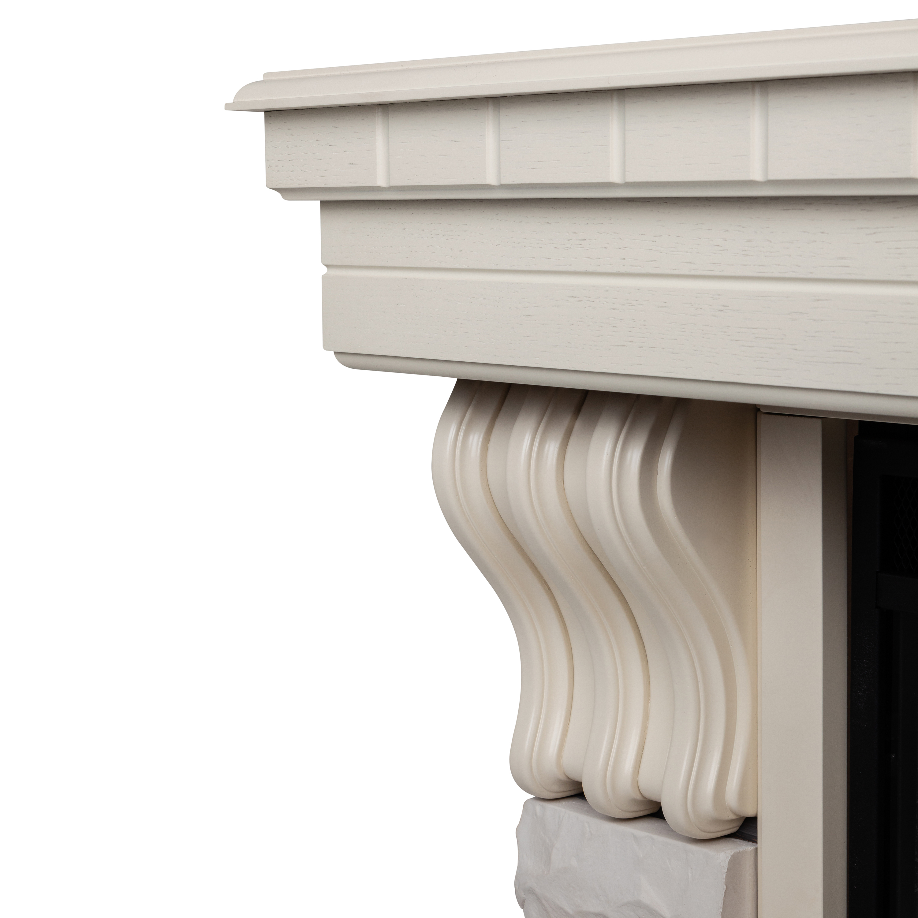 • Изготовлен из искусственного камня и МДФ, покрытого шпоном, - прочного, надежного и стойкого к любым внешним воздействиям материала. Сочетание светлого камня и дерева, декоративная фрезеровка. Дизайн дополнен выемкой для хранения дров в основании обрамления. С массивной каминной полкой.