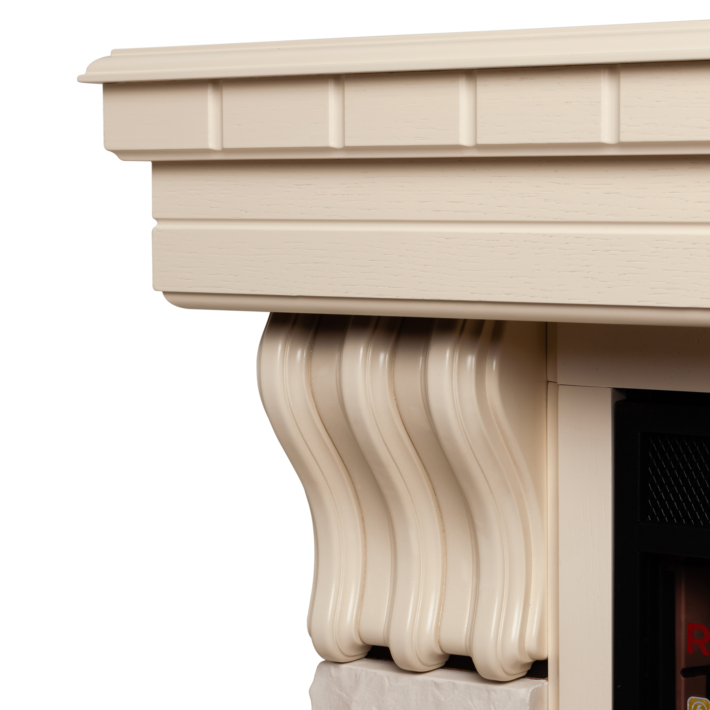 • Изготовлен из искусственного камня и МДФ, покрытого шпоном, - прочного, надежного и стойкого к любым внешним воздействиям материала. Сочетание светлого камня и дерева, декоративная фрезеровка. Дизайн дополнен выемкой для хранения дров в основании обрамления. С массивной каминной полкой.