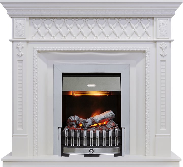 Лаконичность и строгость линий каминокомплекта Dimplex Alexandria гармонично сочетается с изящным узором, который украшает его фронтальную поверхность.