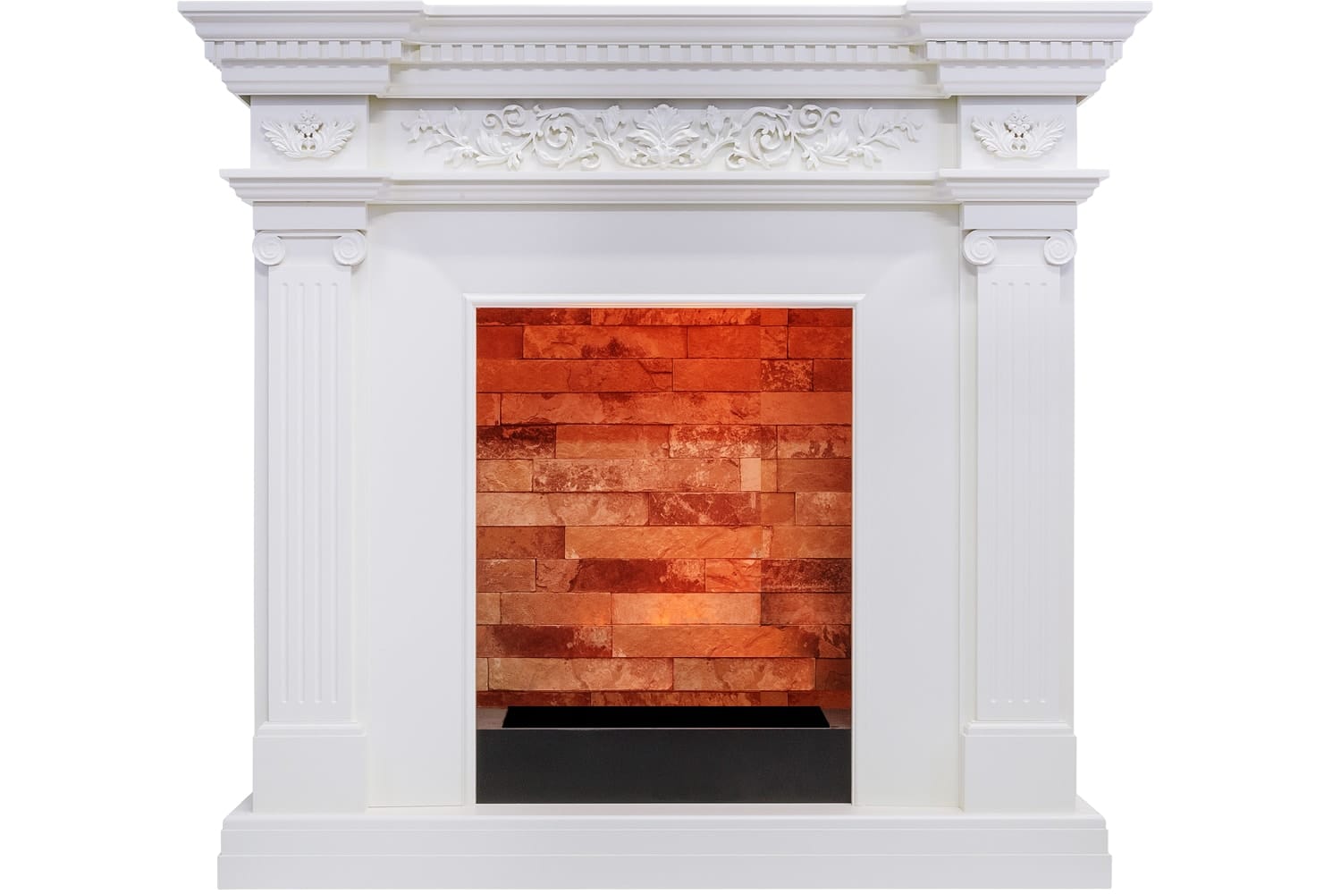 Каминокомплект Dimplex Amalfi выполнен в античном стиле. Изящный лепниной барельеф украшает фронтон и кронштейны античных колонн, расположенных по бокам портала. Цветочный орнамент придает легкую утонченность строгим линиям обрамления очага, а высокий подиум визуально вытягивает портал и завершает элегантный силуэт камина. Портал отлично подойдет как для размещения в городской квартире, так и в загородном доме.