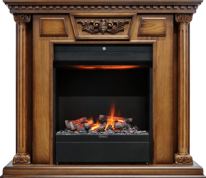 Каминокомплект Dimplex Olympia доступен в нескольких цветовых решениях. Колонны с резным рисунком и витиеватые вставки над очагом выполнены из массива дерева. Этот портал станет лучшим подарком для любителей мебели «с историей» и сторонников классической архитектуры.