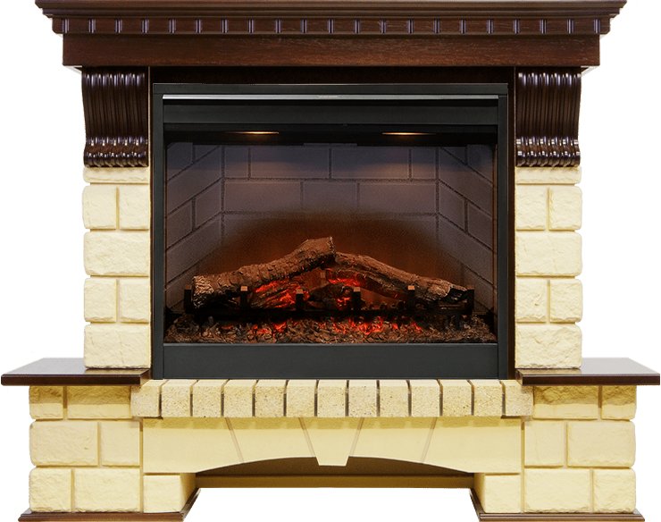 В очаге предусмотрена возможность выбора режима обогрева –1 или 2 кВт, эффект пламени может работать независимо от обогрева. Максимально реалистичный муляж дров делает очаг максимально похожим на обычный дровяной камин. Визуализация кирпичной кладки выполнена по всем внутренним стенкам очага. В очаге реализована функция плавно регулируемой подсветки. В комплекте с электрокамином предлагается пульт ДУ, чтобы холодными длинными вечерами, уютно устроившись в кресле, можно было только нажимать кнопки и наслаждаться отдыхом, любуясь завораживающим пламенем..