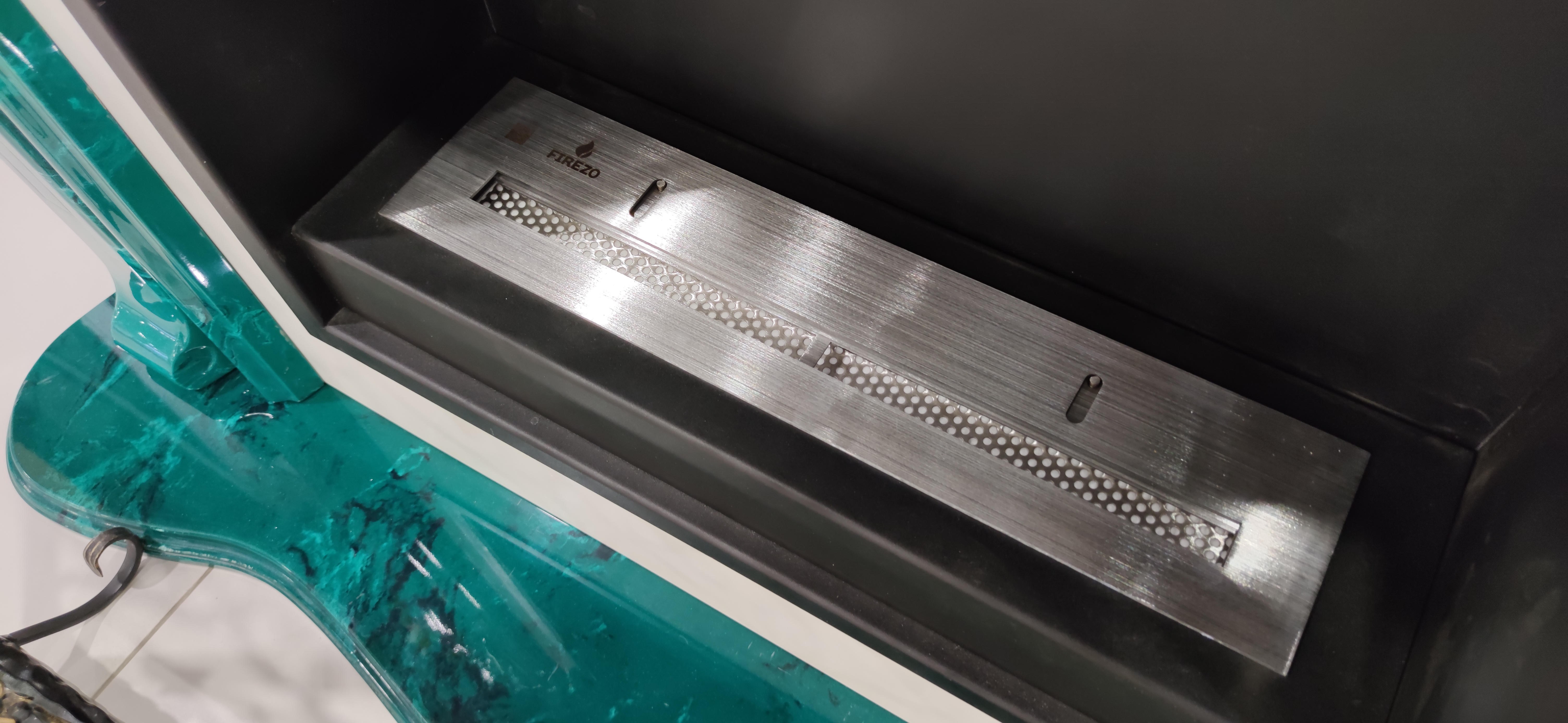 Биокамин Firezo Malahit имеет длину 1000 мм, но может быть изготовлен на заказ по вашим индивидуальным размерам. Линия огня имеет прямоугольную форму. Сварная конструкция очага гарантирует монолитность биокамина и исключает любые возможные проблемы, которые могут возникнуть в результате деформации резьбовых соединений под воздействием тепла после длительного использования.
