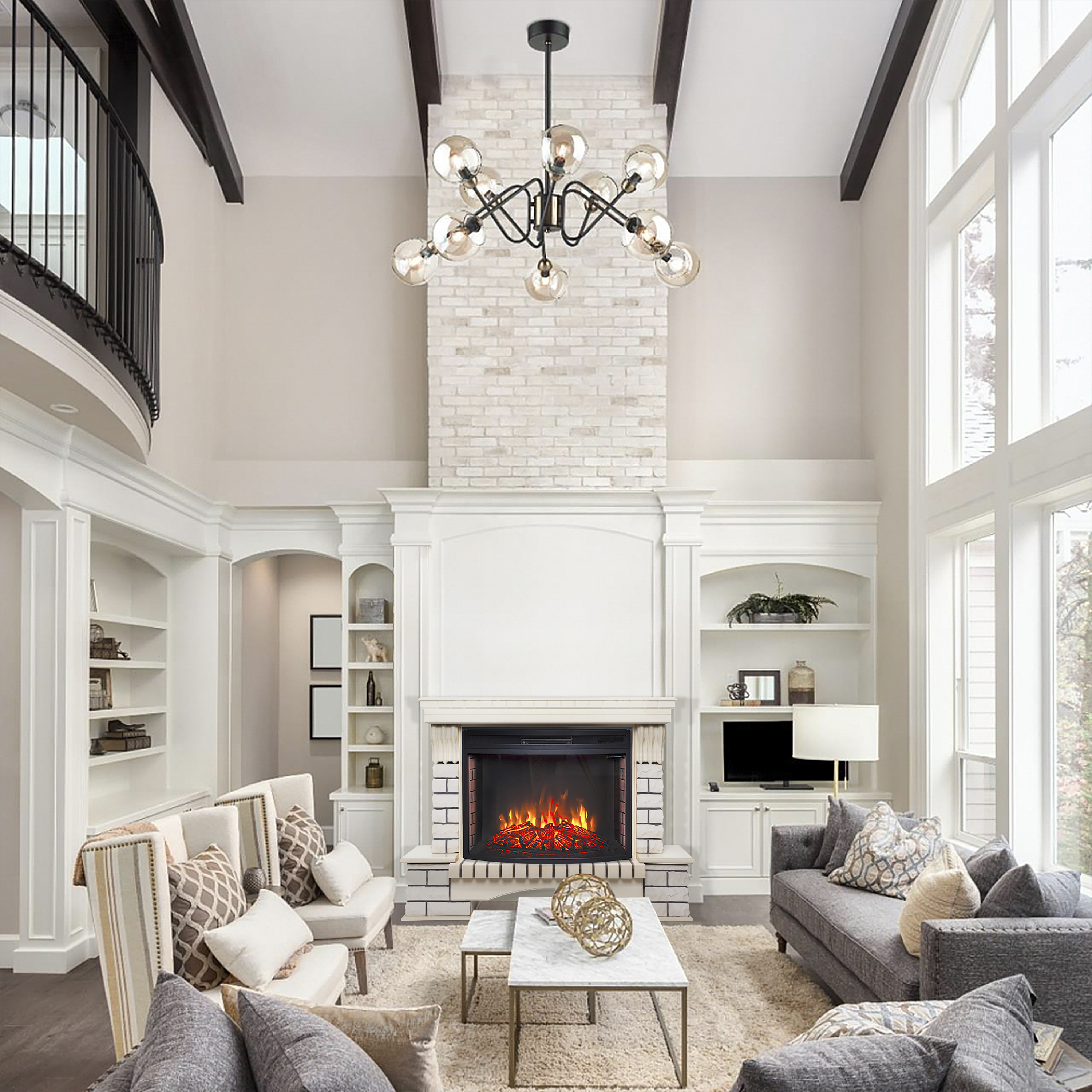 • Эффект пламени, не отличимого от настоящего, создается ультразвуковым парогенератором, вырабатывающим холодный водяной пар и муляжом дров, подсвеченным галогеновыми лампами.