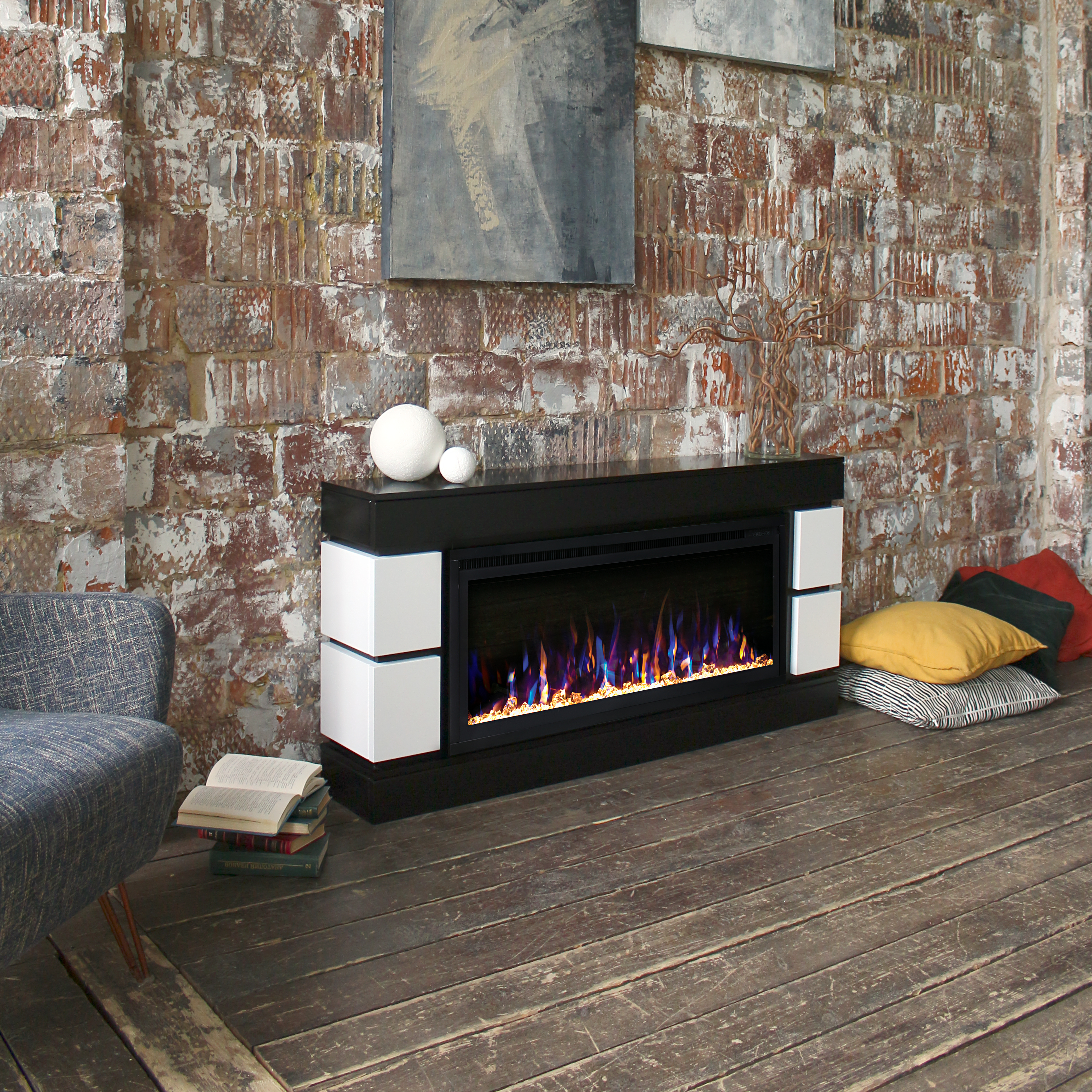 В комплект входит широкий очаг Saphir 42, с мощностью 1,5 кВт, который отлично подойдет для обогрева помещения до 15 м2. Очаг имеет встроенную функцию регулировки яркости пламени и пульт дистанционного управления. Дополнительный уют придаст приятное потрескивание дров, которое создается благодаря встроенной функции звукового сопровождения.