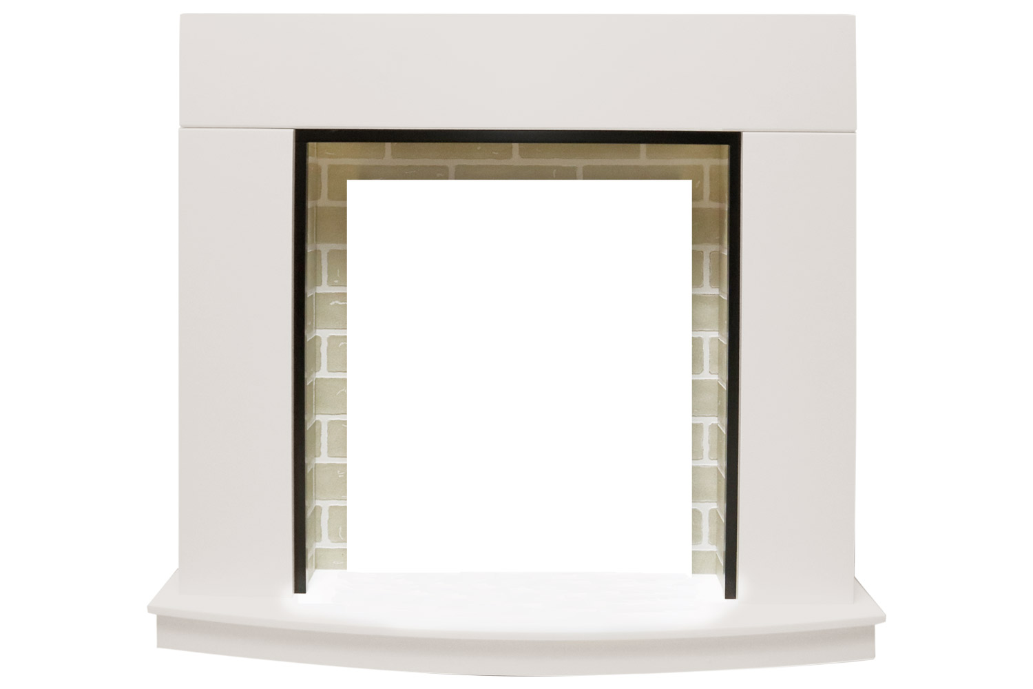 Зона очага в данной модели декорирована имитацией кирпичной кладки и обрамлена контрастным черным кантом, что делает ее более изысканной и реалистичной.