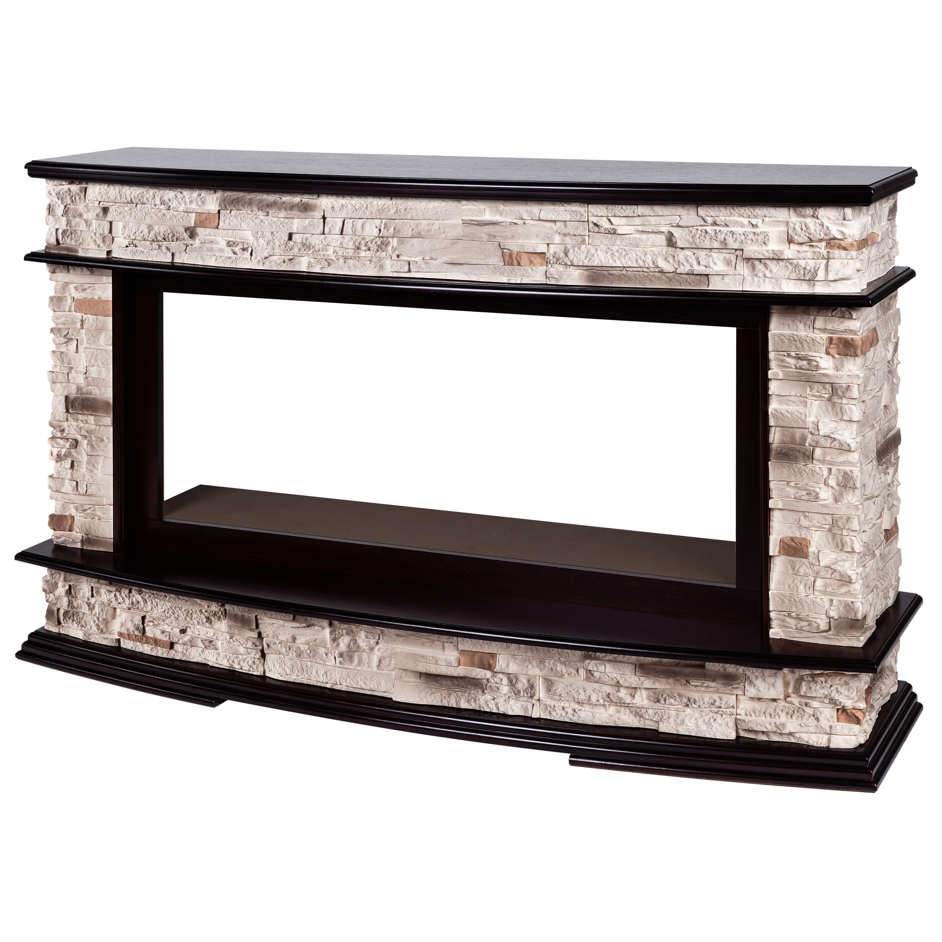 Данный портал от российского производителя RealFlame изготавливается только из качественных материалов таких, как МДФ и шпон. Боковые колонны выполнены из искуственного камня. А классические цвета портала прекрасно подчеркивают яркое пламя камина.