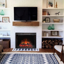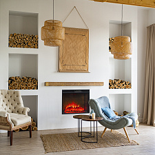 - Способность обогревать помещение. Камин электрический широкий хорошо подходят для комнат, где люди находятся временно.