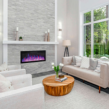Электрокамины с приставкой LED - это очаги, имитацию огня в которых, создают светодиоды, а не лампы накаливания. По сравнению с ламповыми электрокаминами (которые уже встречаются крайне редко), такие очаги потребляют минимальное кол-во электроэнергии, создают более яркое пламя, имеют множество функций за счет современного устройства.
