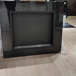 Биокамин Firezo New York изготовлен из металла толщиной 2 мм и портала из искусственного мрамора с черной переливающийся крошкой.